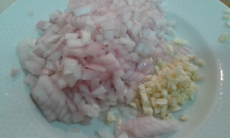 - Cuando el aceite empiece a humear, añadir el ajo y la cebolla y remover constantemente a fuego lento