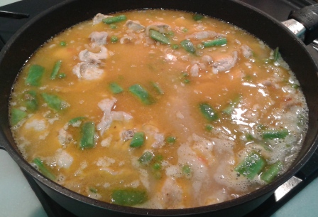 - Llevar a ebullición el 1,25 litros de caldo de pollo