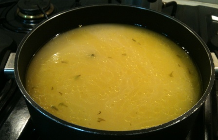 - En una cazuela ancha freír los ajos, a fuego lento, en las seis cucharadas de aceite