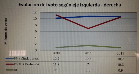 Por este motivo, creo que Podemos nunca será lo suficientemente consciente del precio que van a tener que pagar los ciudadanos de este país por haber fragmentado la izquierda. Esta fractura de la izquierda va a permitir que gobierne el PP otra legislatura, quedándonos con el único consuelo de que no lo va a hacer con mayoría absoluta. Los votos de una única candidatura de izquierdas hubiesen superado de largo los 159 escaños que han obtenido PSOE y Podemos. Este giro a la izquierda es uno de los deberes que los barones del PSOE tendrían que tomar nota, en vez de poner como línea roja infranqueable la defensa de la “sacro-santa” unidad territorial que tal y como decía Gemma Calvet en la tertulia del programa 8 al Dia del pasado 28/12/2015 “Pablo Iglesias fue a las Elecciones Generales con el gran riesgo adquirido de defender este cuestionamiento aparente de la unidad de España, reconociendo un referéndum vinculante para Catalunya y resulta que se han salido”.